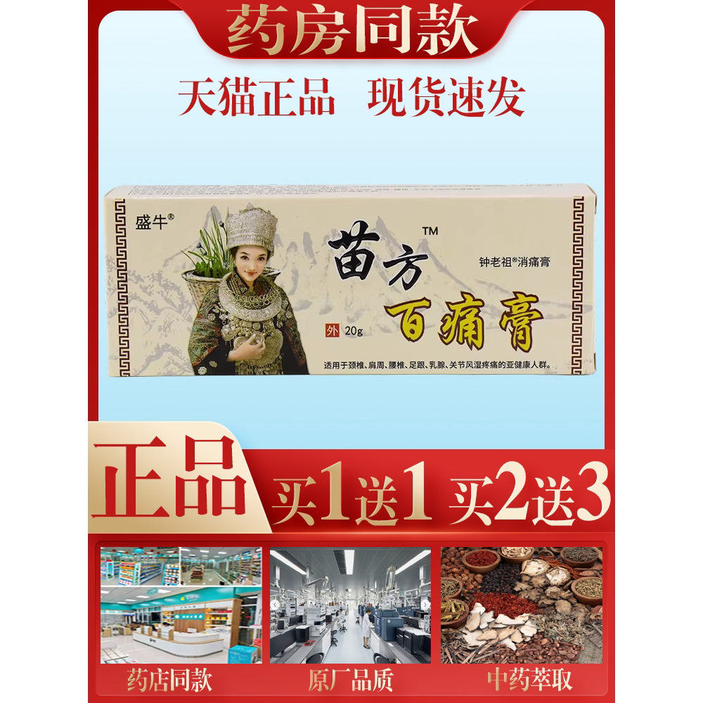 【1送1】盛牛苗方百痛膏钟老祖消痛膏20g/支外用草本护理舒缓软膏