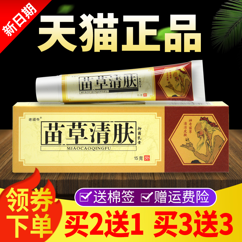 老顽牛苗草清肤乳膏 正品苗草王草本乳膏软膏 买二送一 买三送二