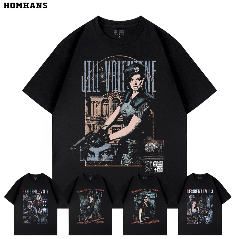 生化危机游戏周边复古怀旧水洗印花短袖游戏重置海报个性T恤纯棉