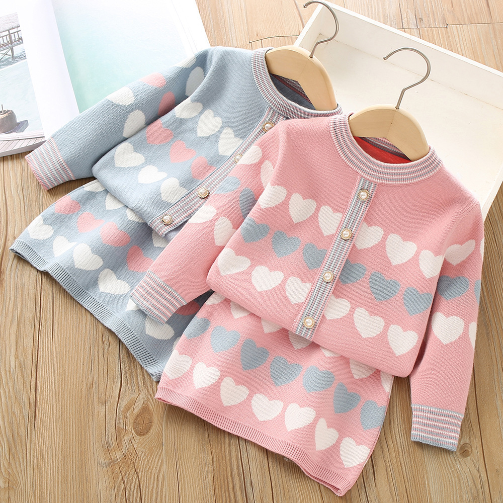 女童毛衣套装2024秋冬新款洋气小香风蝴蝶结针织开衫包裙两件套潮
