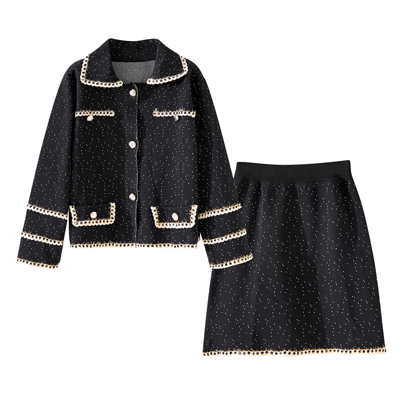 中式盘扣立领复古新中式旗袍气质名媛重工烫钻针织衫盘扣包裙套装