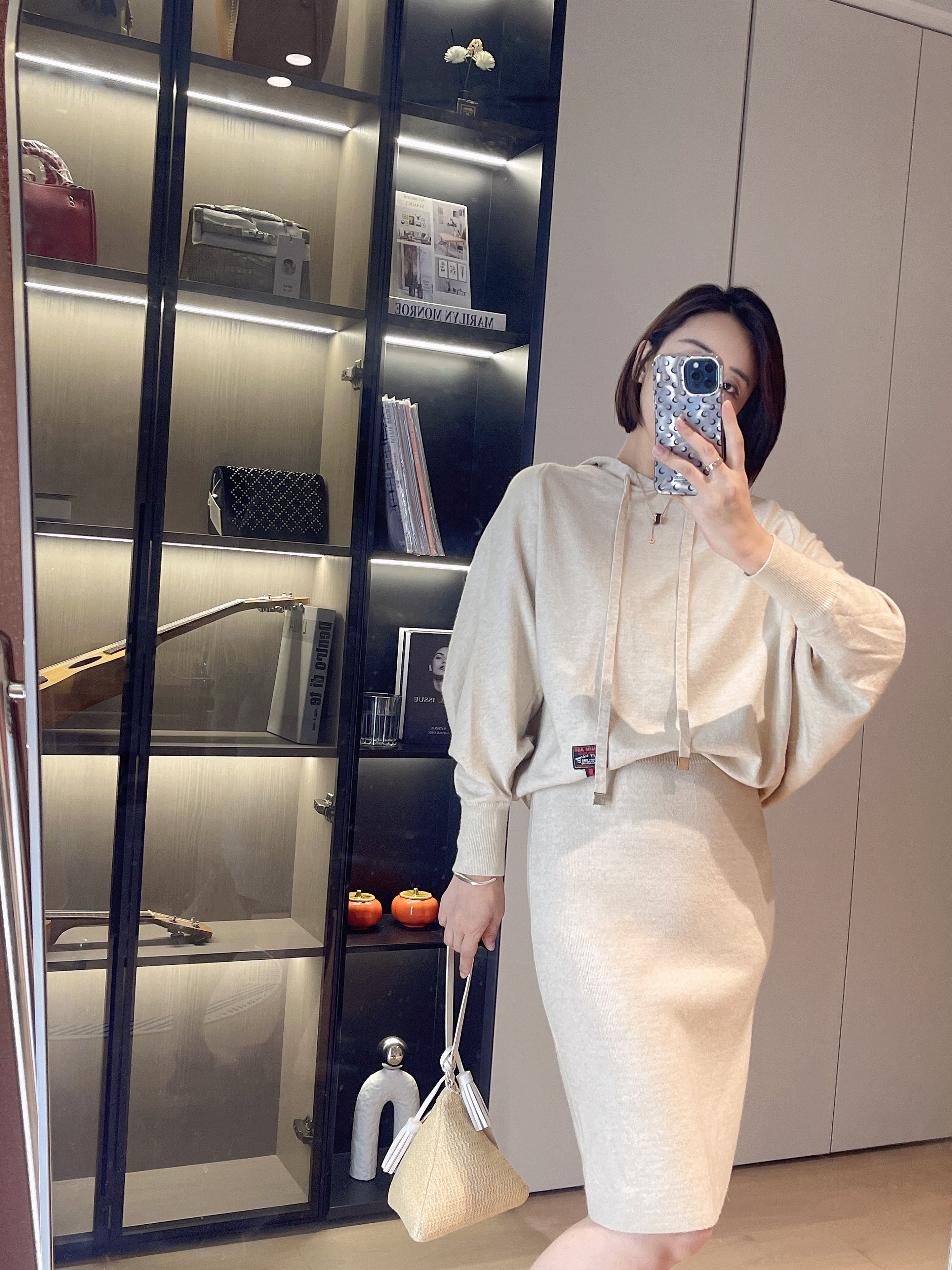 高级感羊毛针织套装裙女两件套2023秋新款小香风时尚毛衣包裙套装