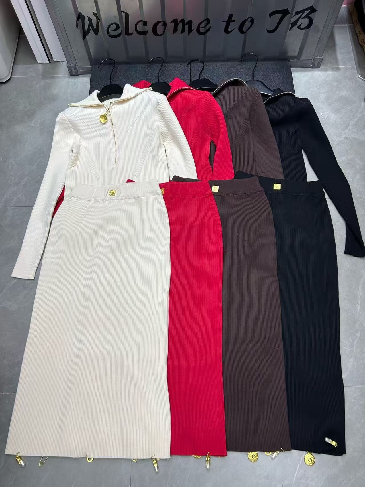 2025秋冬季重工不规则金属感吊坠拉链毛衣针织衫半身包裙两件套装
