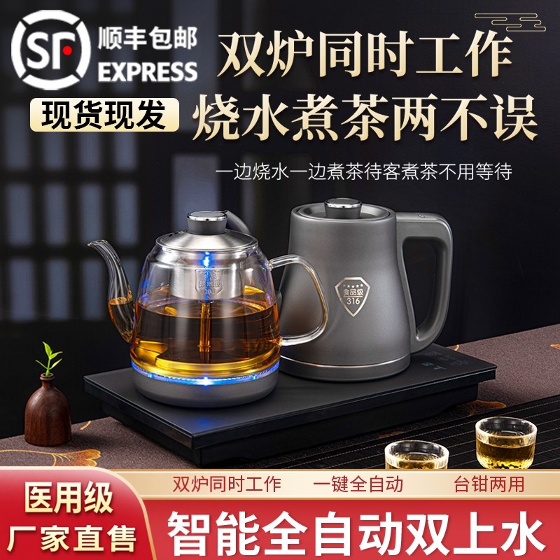 纯钛大容量全自动双上水电热烧水壶玻璃泡茶专用茶台一体电磁茶炉