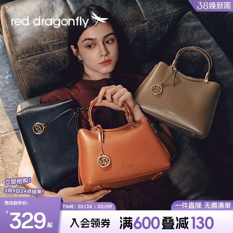 红蜻蜓妈妈手提包新款真皮牛皮大容量中年婆婆大气软皮婚宴女包包