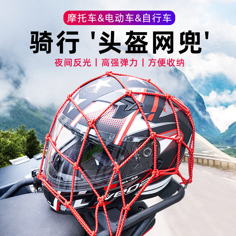 摩托车网兜机车头盔网绳后座绑带收纳油箱网车尾夜间反光杂物网兜