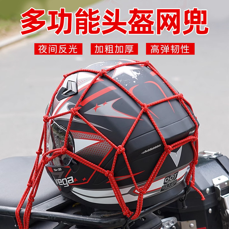 摩托电动车网兜头盔行李杂物机车油箱绑带松紧摩托尾夜间反光网绳