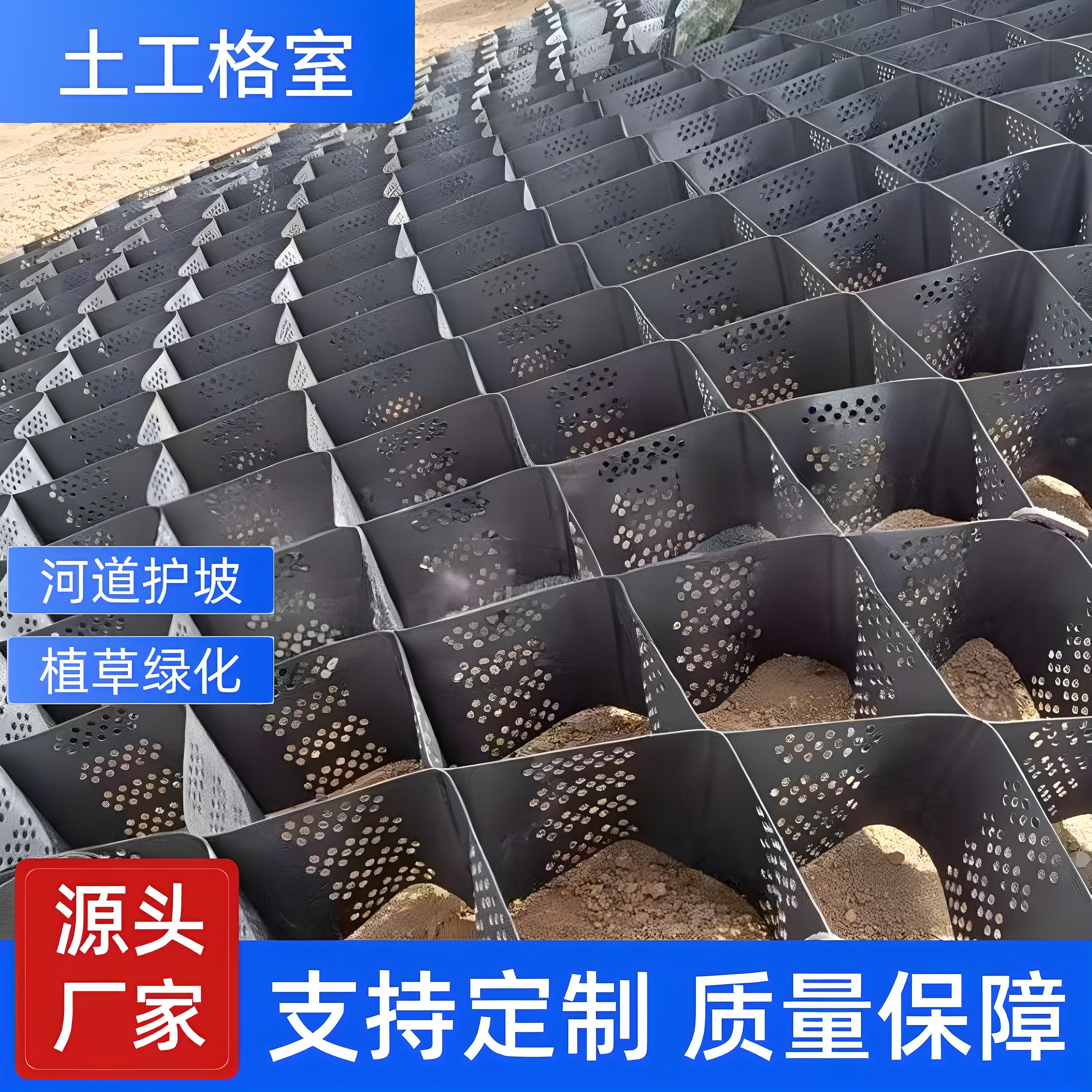 土工格室边坡河道防护蜂巢格栅高强稳固路基排水孔HDPE护坡厂家