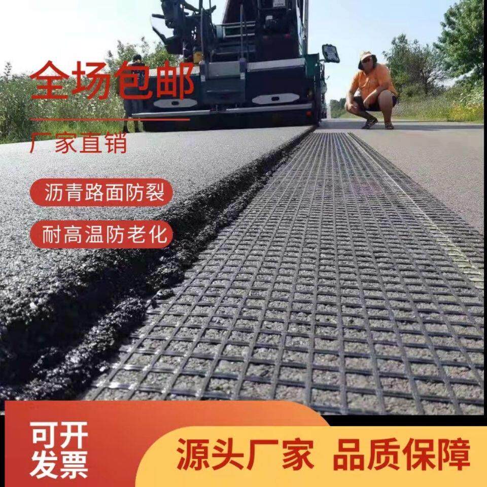 沥青路面防裂玻璃纤维网玻纤土工格栅路面白改黑防裂纤维网耐高大