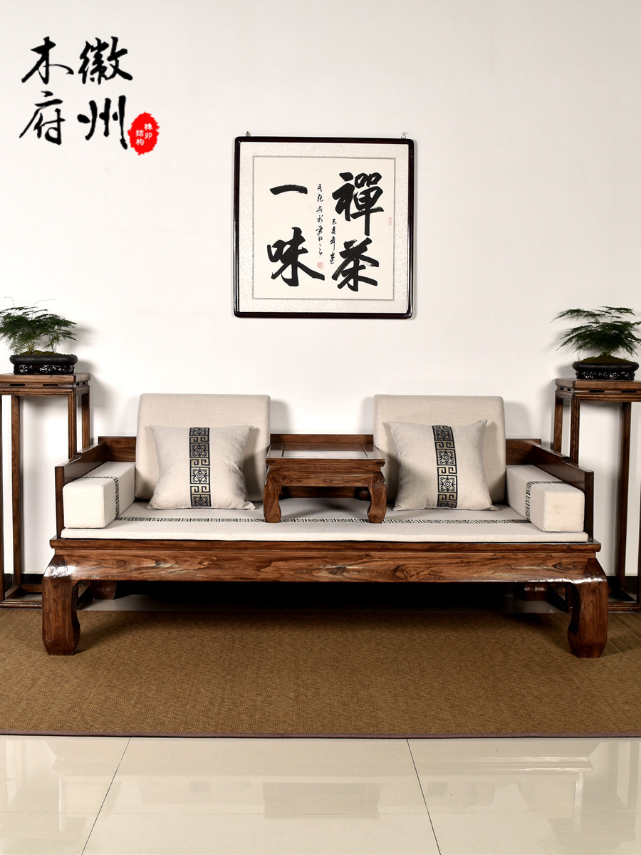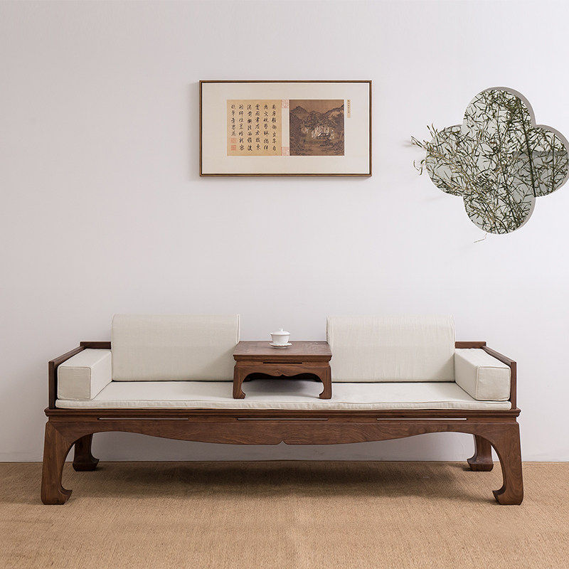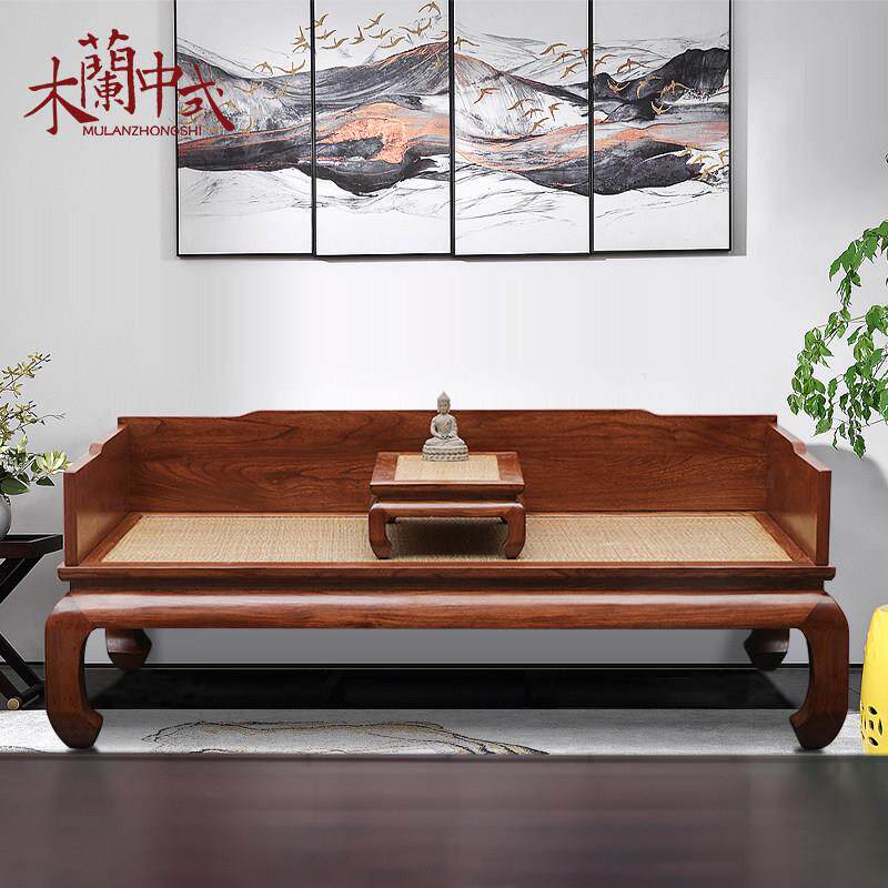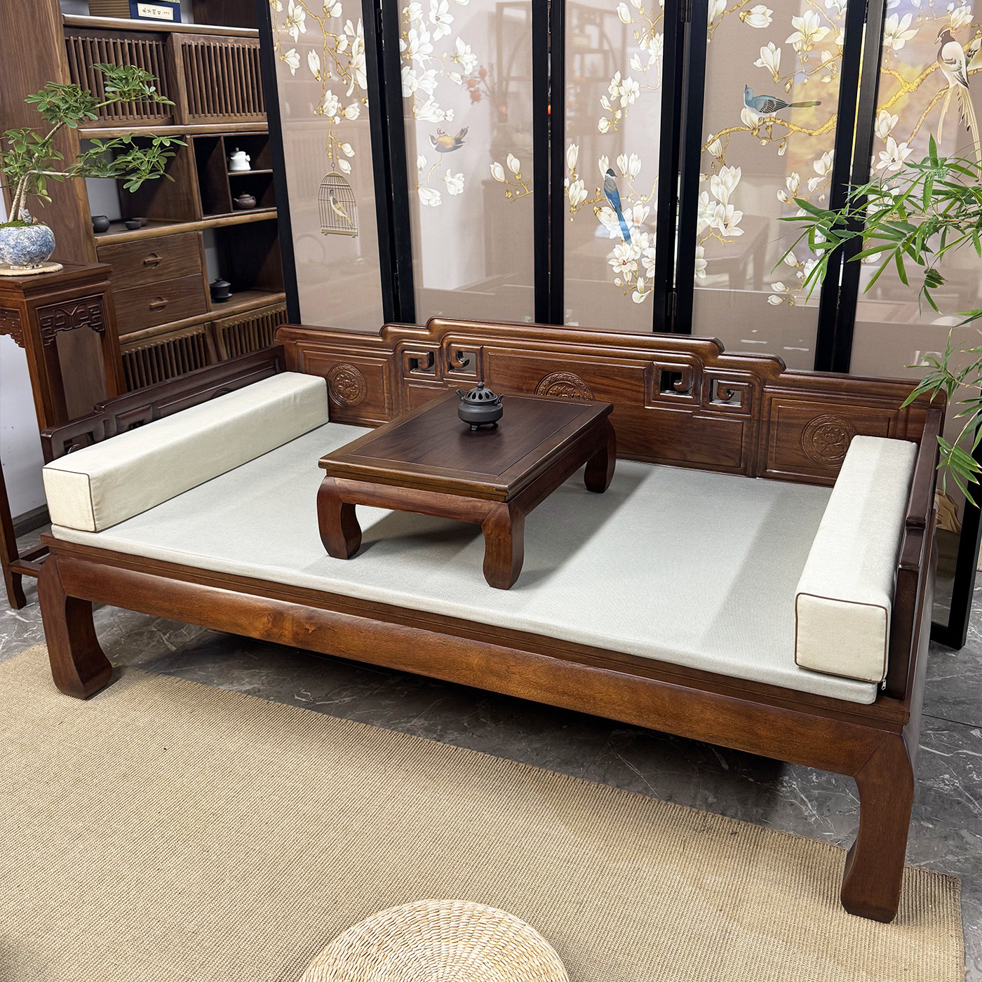新中式沙发老榆木家具罗汉床免实木胡桃木色卧榻罗汉榻禅意沙发床