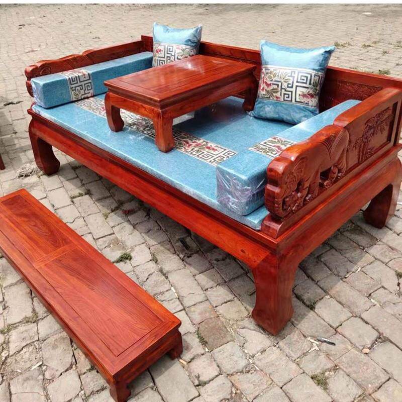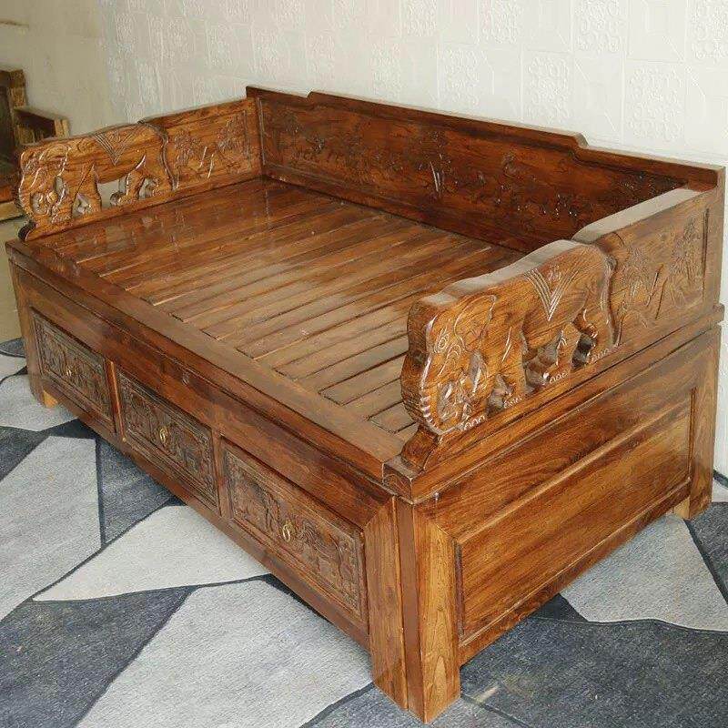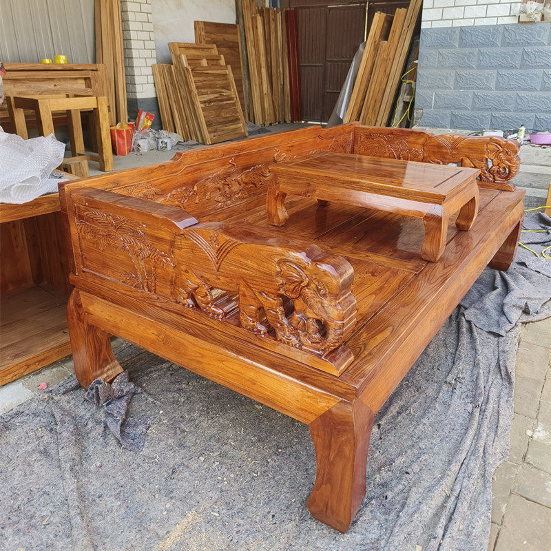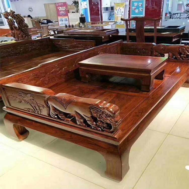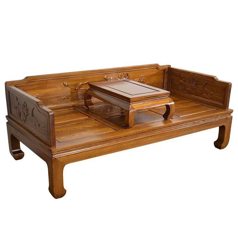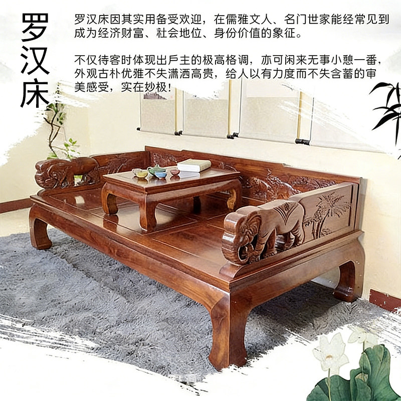 老榆木罗汉床中式仿古榫卯罗汉榻客厅家具沙发床大象雕刻美人床榻