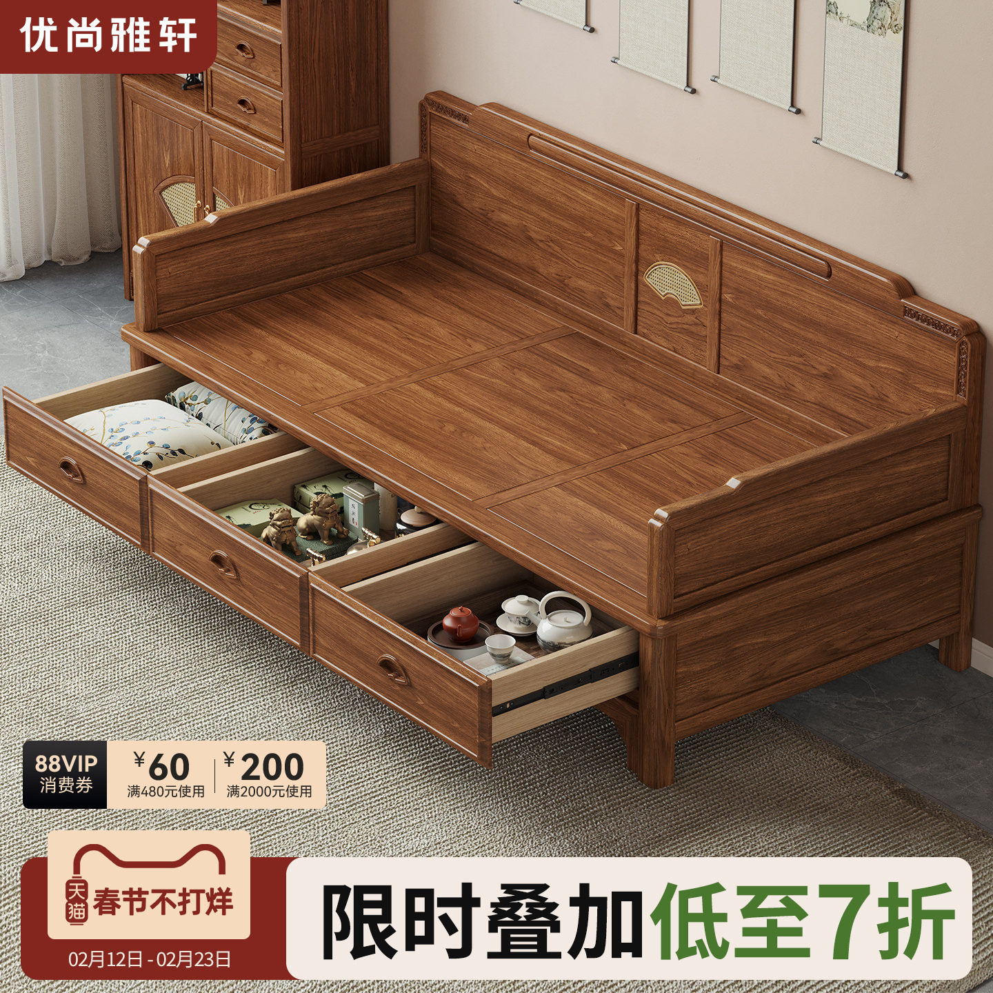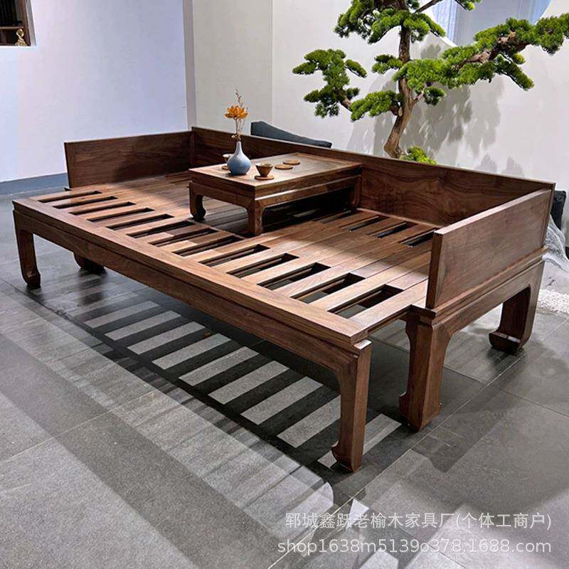 北美黑胡桃木美人榻老榆木新中式实木罗汉床现代简约小户型古卧榻