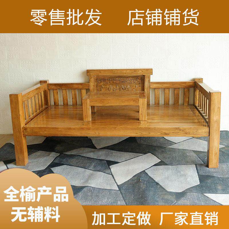 北方老榆木罗汉床白茬白坯实木床仿古床客厅沙发床新中式家具双人