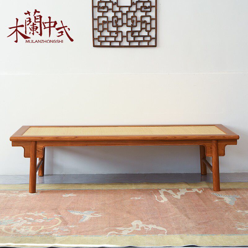 中式藤面罗汉榻老榆木藤席面明式经典牙板桌茶几茶台凉床宋式美学