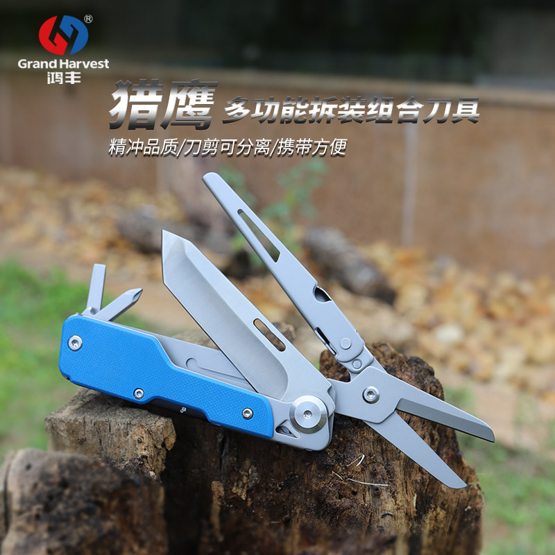 鸿丰猎鹰户外多功能大剪刀随身装备可拆卸小刀车载应急工具破窗锤
