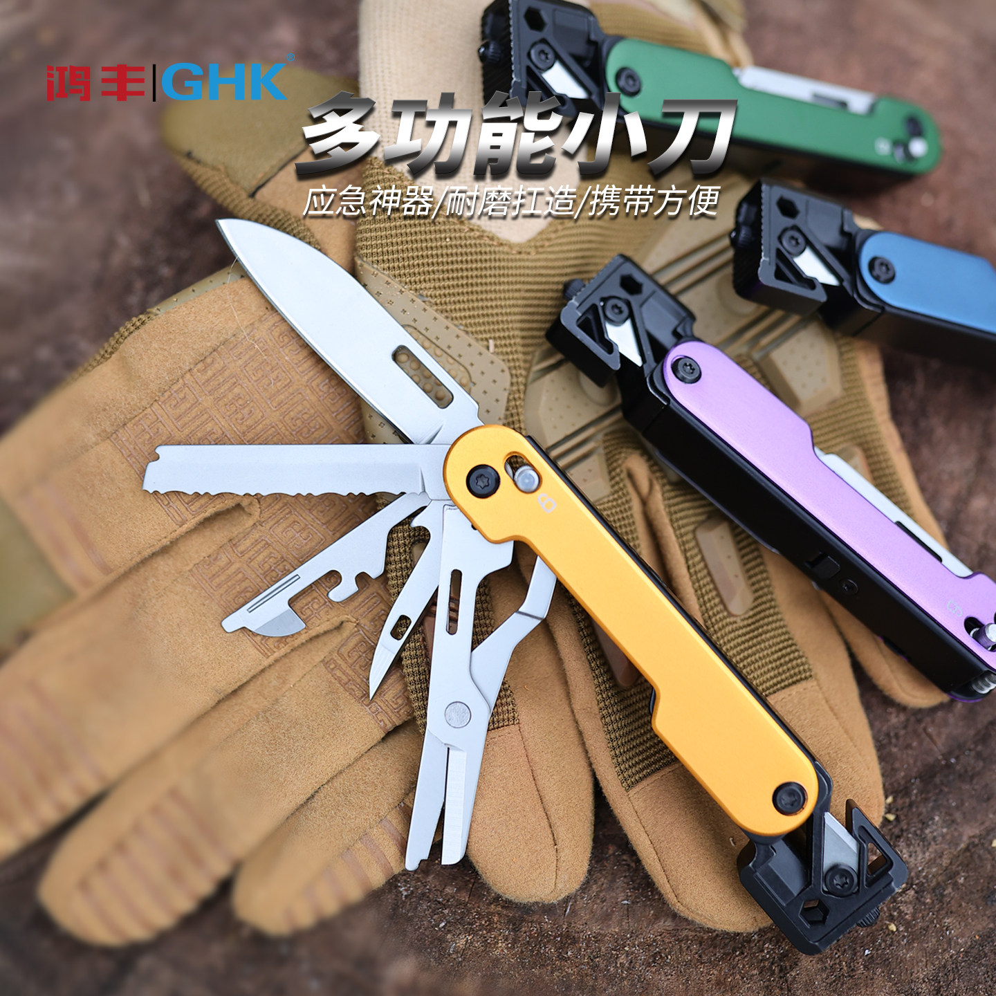 鸿丰GHK多功能刀瑞士小刀折叠刀户外露营车载破窗锤应急工具装备