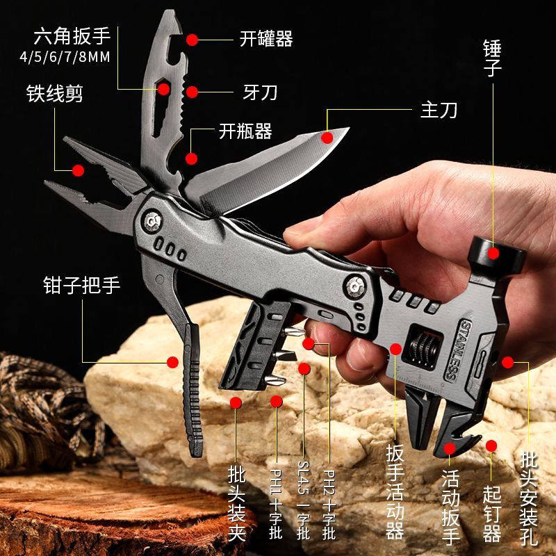 户外多功能扳手锤钳子随身便携防身刀折叠刀野外露营破窗应急工具