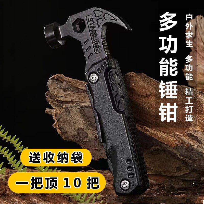 多功能钳锤户外扳手折叠钳子帐篷野外露营地钉锤生存刀应急工具锤