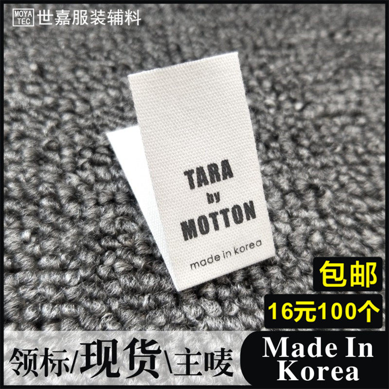 KOREA韩国制造服装通用白色布标领标订做洗涤商标水洗唛布标标签