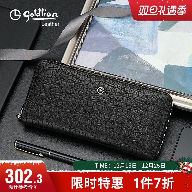 金利来新款钱包男士长款真皮时尚商务手拿包鳄鱼纹牛皮青年手抓包