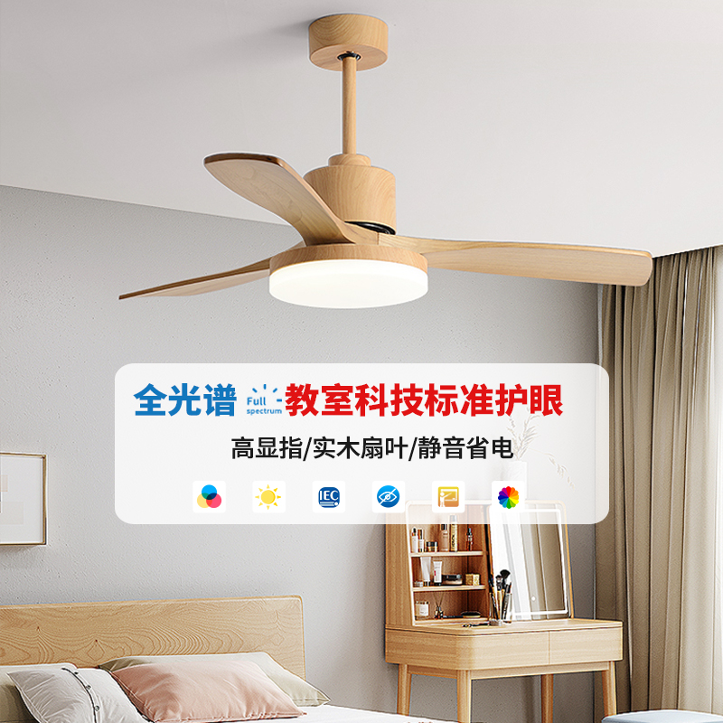 北欧实木风扇灯卧室家用客厅原木吊扇灯餐厅简约变频一体风扇吊灯