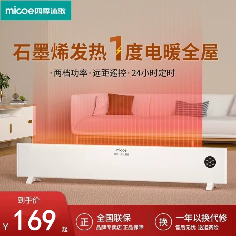 四季沐歌踢脚线石墨烯冬天取暖神用节能省电暖器壁挂浴室电热器家