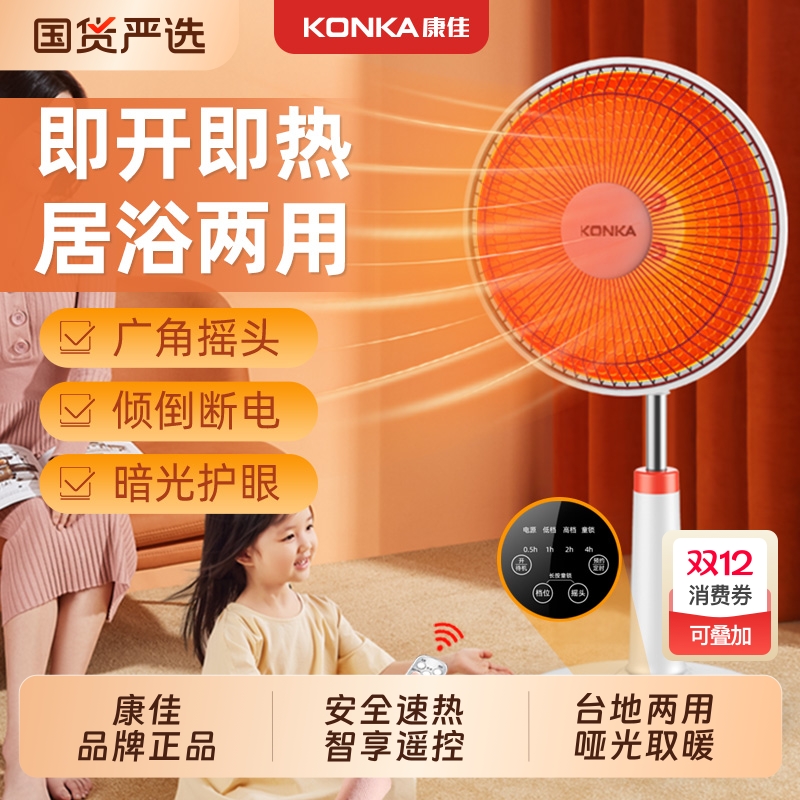 康佳小太阳新款取暖器家用落地升降伸缩电热扇省电暖气速热烤火炉