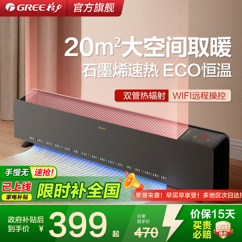 格力WIFI踢脚线取暖器家用暖气片电暖气石墨烯电热器移动地暖浴室