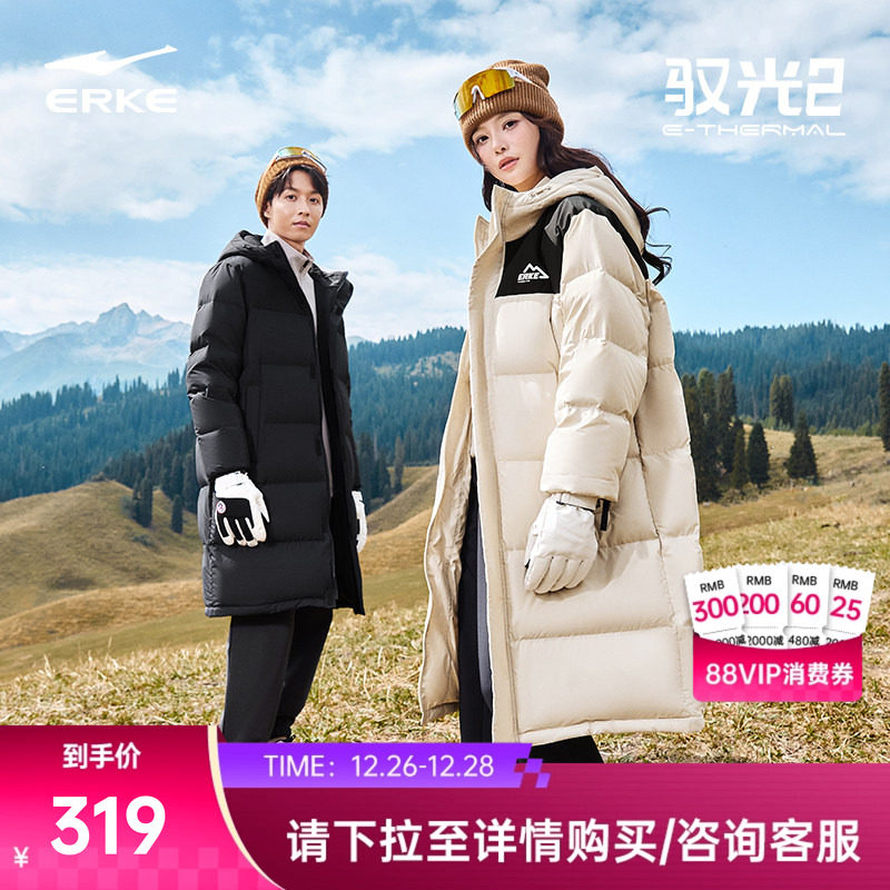 驭光2.0鸿星尔克长款羽绒服冬季新款男女情侣款棉服棉袄大衣外套