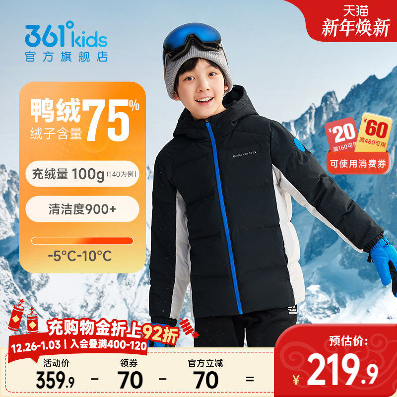 361度童装儿童羽绒服男童运动冬装冬季新款男孩棉服加厚女童外套