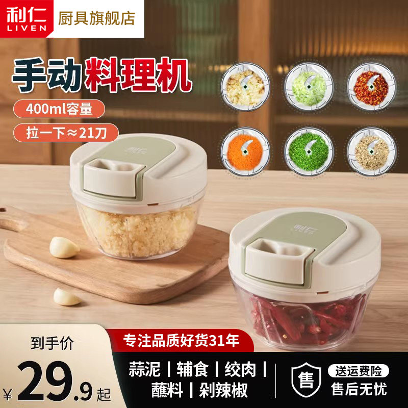 利仁拉蒜器家庭手动料理机蒜蓉搅碎机蒜末粉碎器大蒜搅捣器蒜泥器