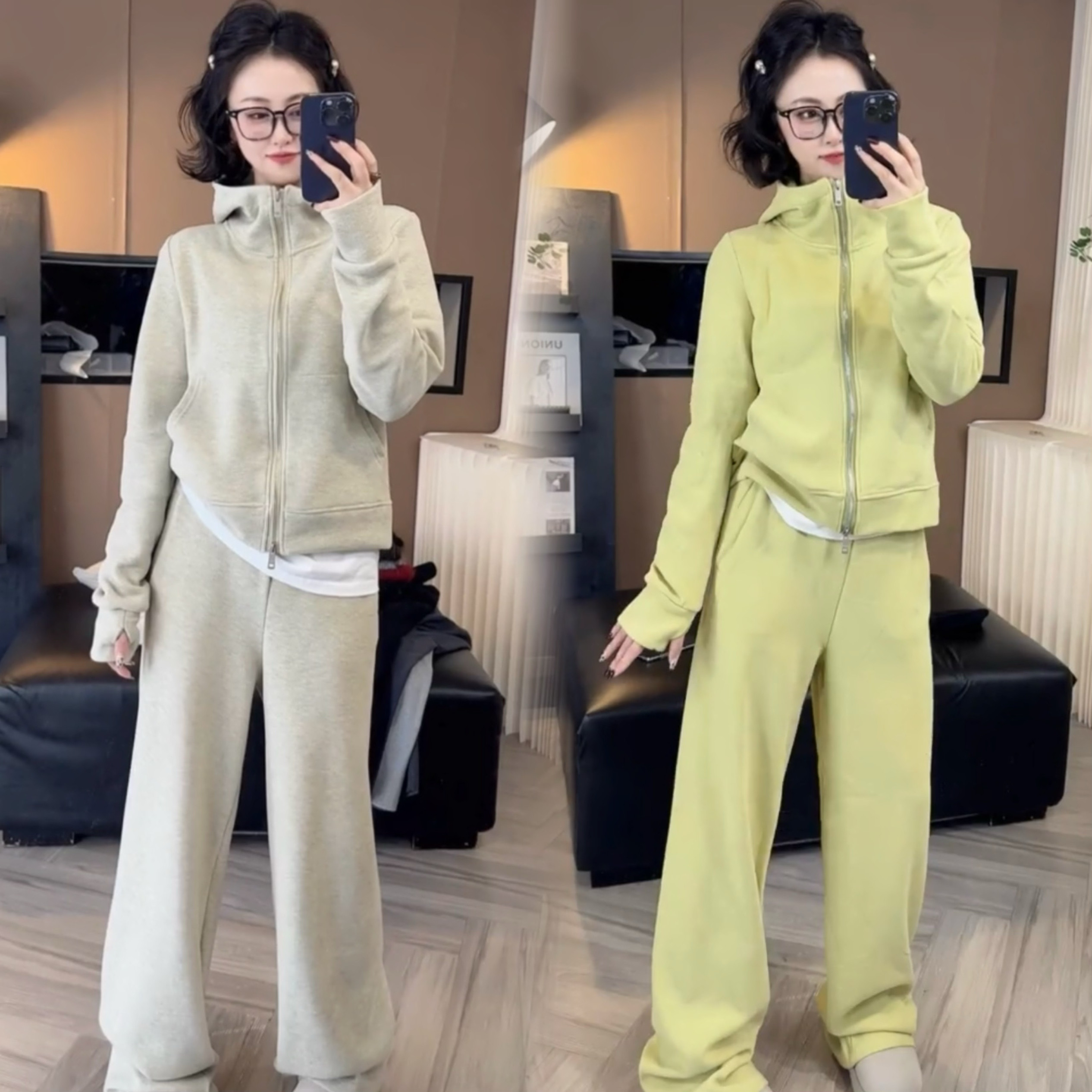 - 宽松卫衣两件套