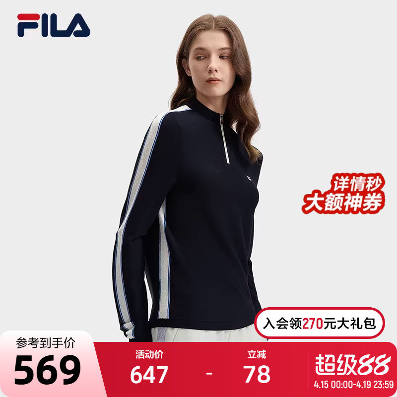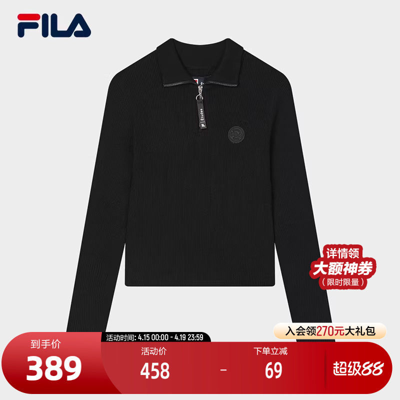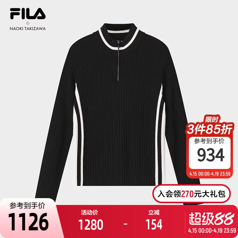 FILA 斐乐官方女子编织衫2026春季新款高尔夫运动半拉链修身毛衣