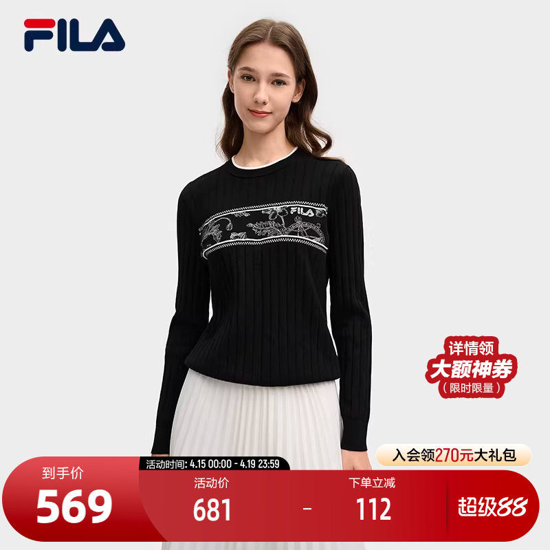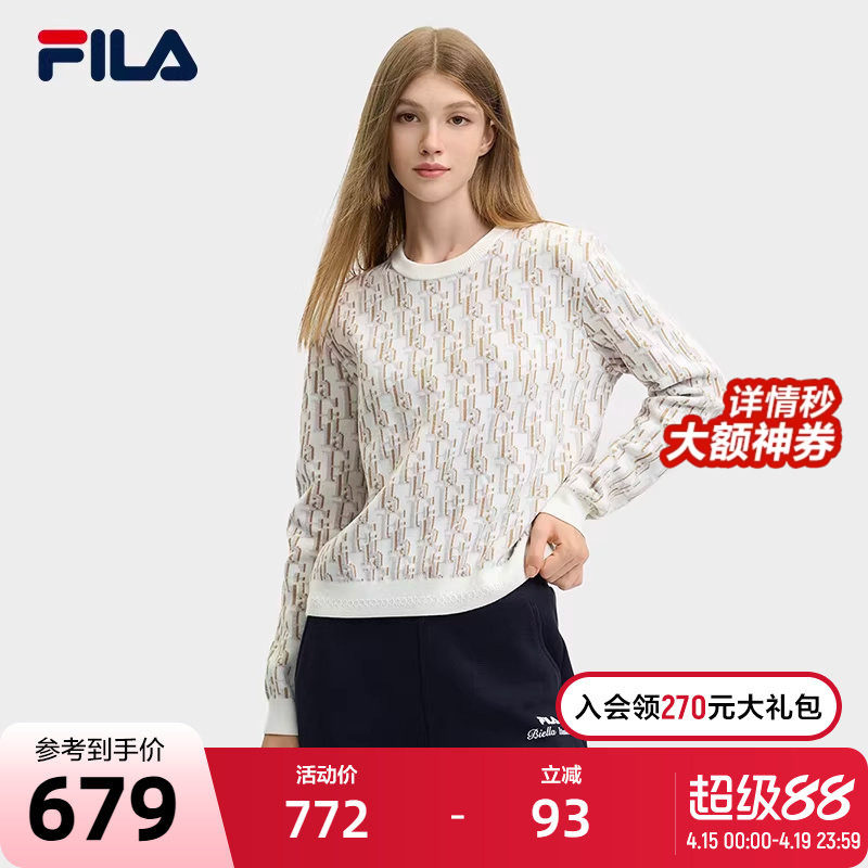 FILA 斐乐官方女子编织衫2025春季新款时尚休闲刺绣基础套头毛衣