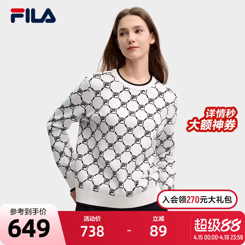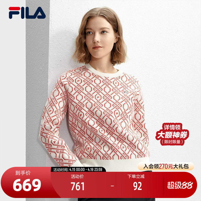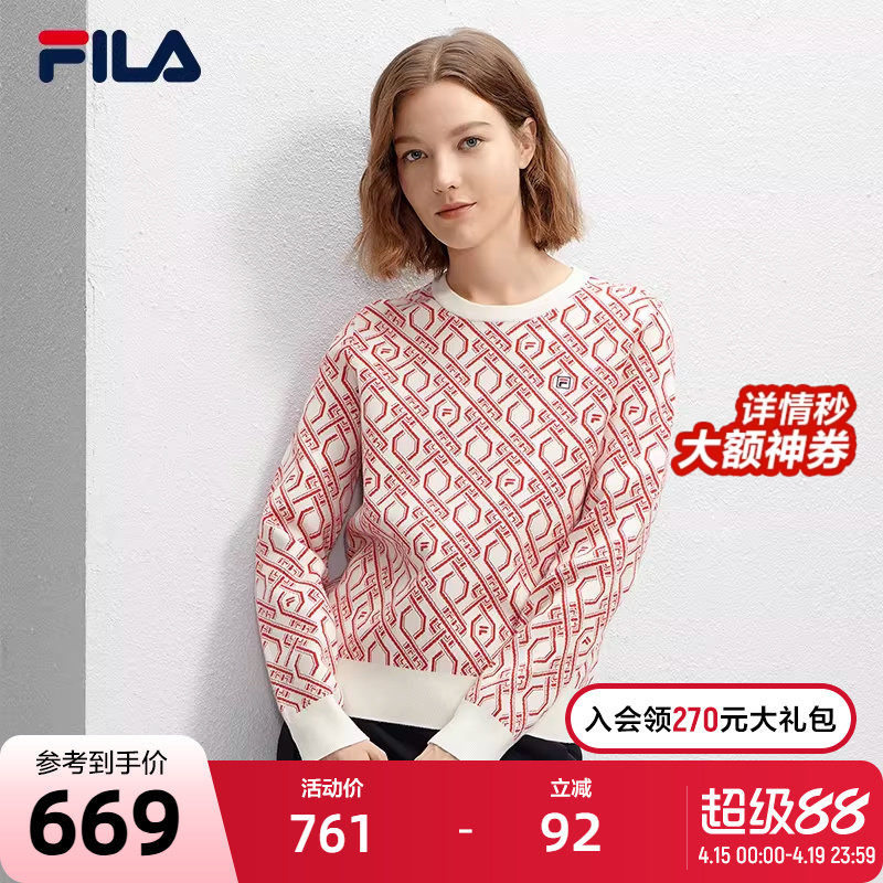 FILA 斐乐官方女子编织衫2024冬季新款时尚休闲基础满印长袖毛衣