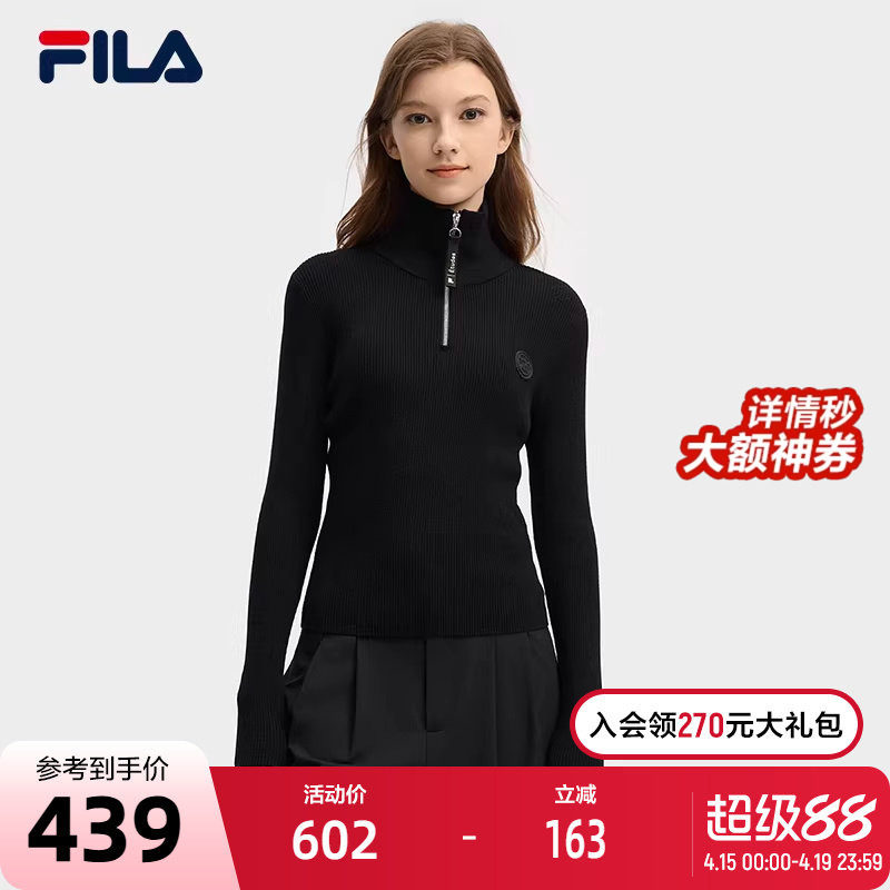 FILA 斐乐官方女子编织衫2025春新款时尚简约修身半拉链套头毛衣