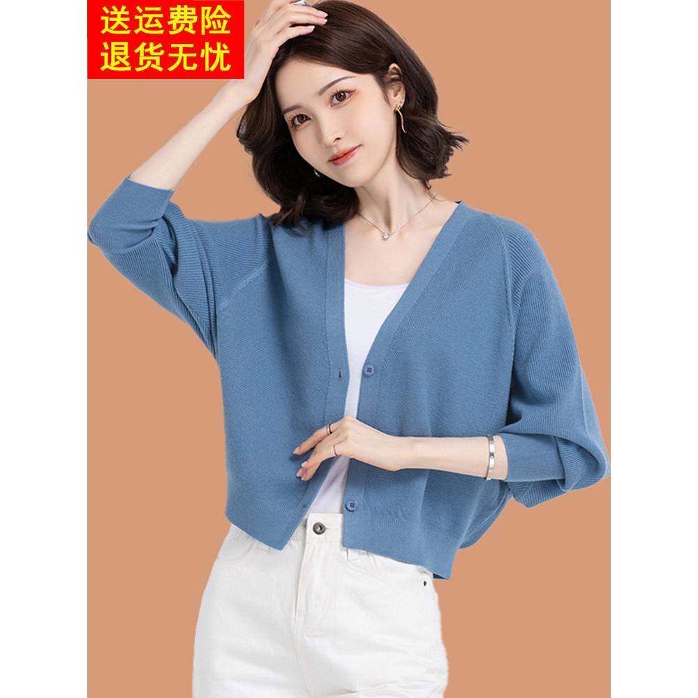 开衫针织开衫女子春季和秋季2025新宽松的蝙蝠衬衫短小外披肩毛衣