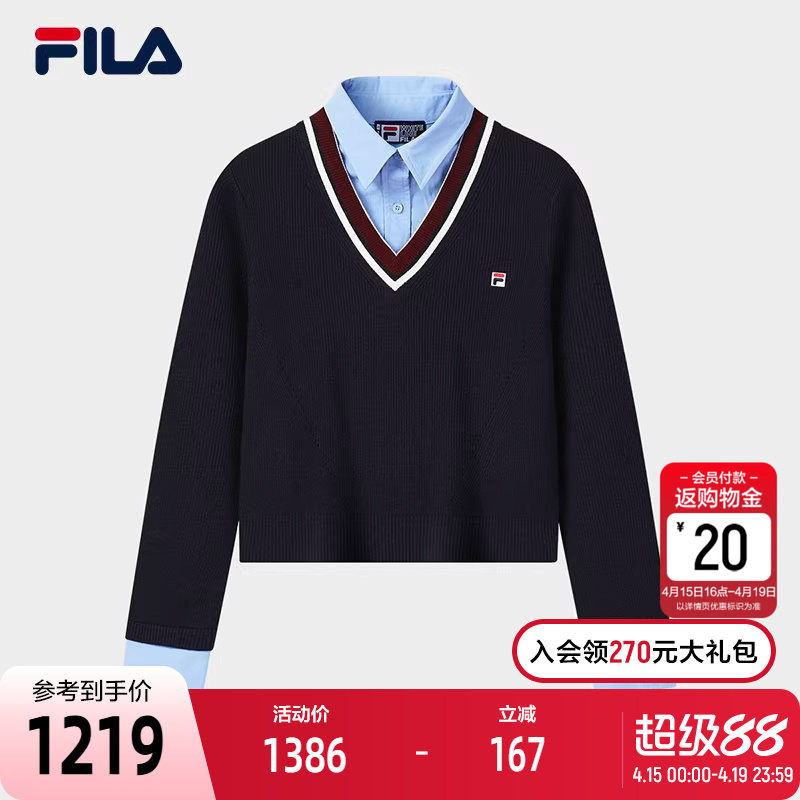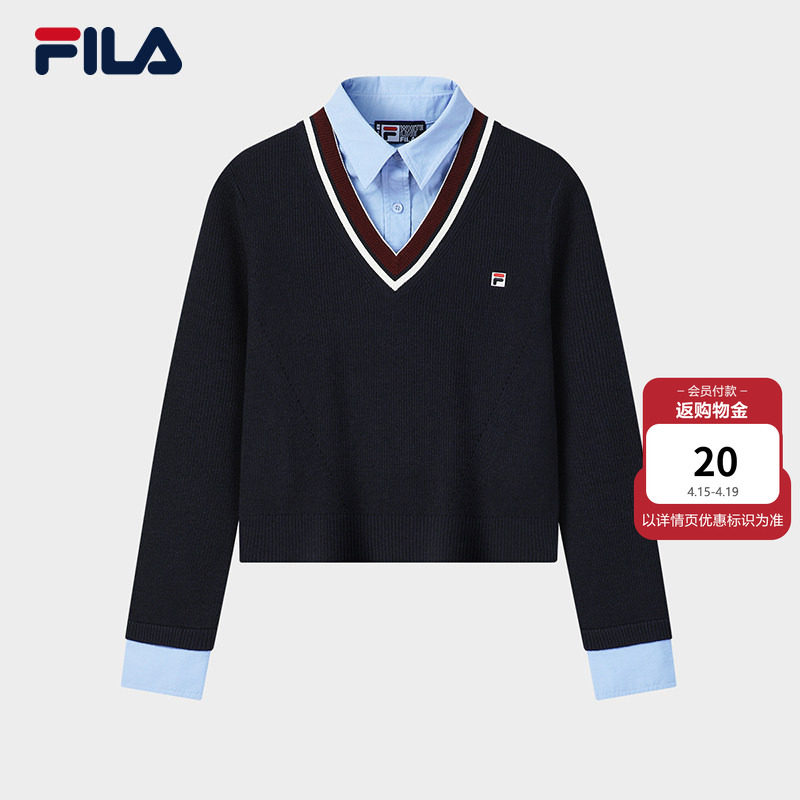FILA 斐乐官方女子编织衫2026春季新款时尚假两件学院风套头毛衣