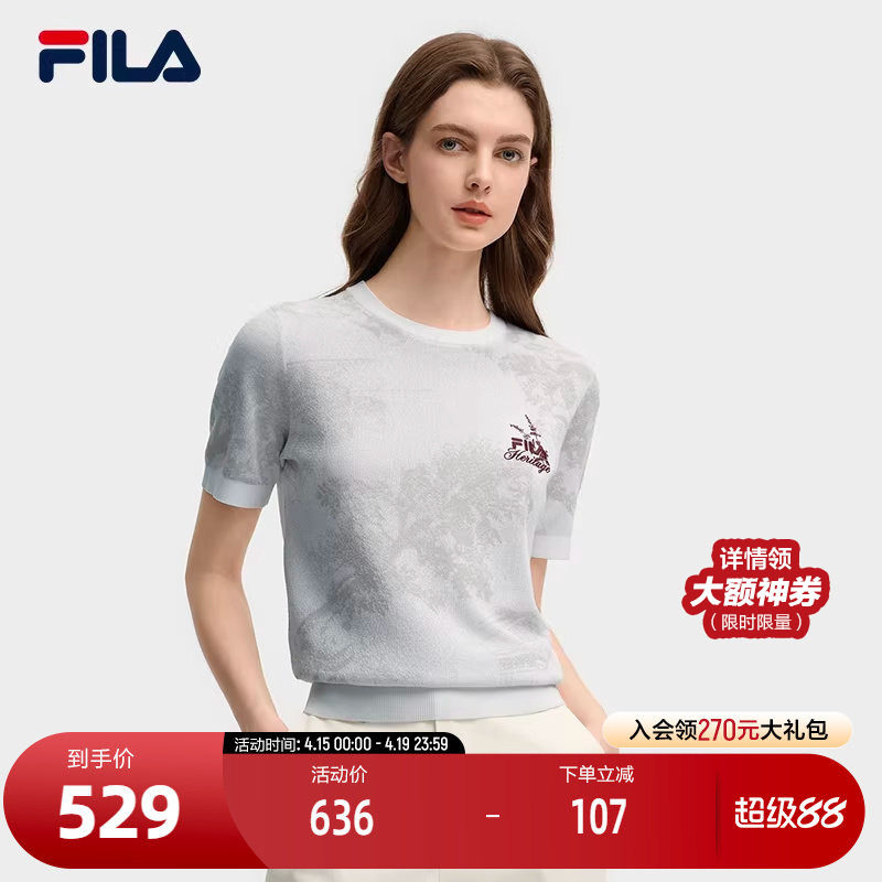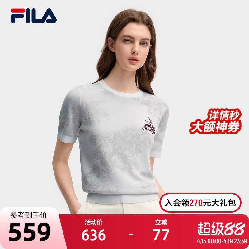 FILA 斐乐官方女子编织衫2025秋季新款时尚休闲简约基础短袖毛衣