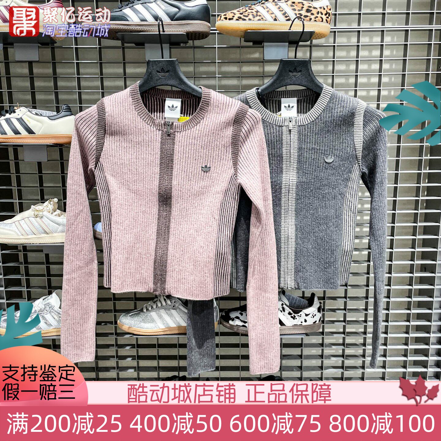 阿迪达斯三叶草女子2026春新款经典短款运动开衫毛衣 KR5037 5038