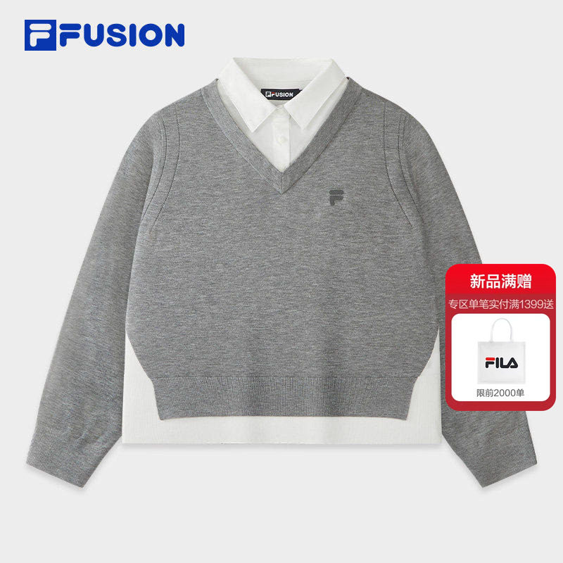 FILA FUSION斐乐潮牌女子编织衫2026夏季新款时尚休闲假两件毛衣
