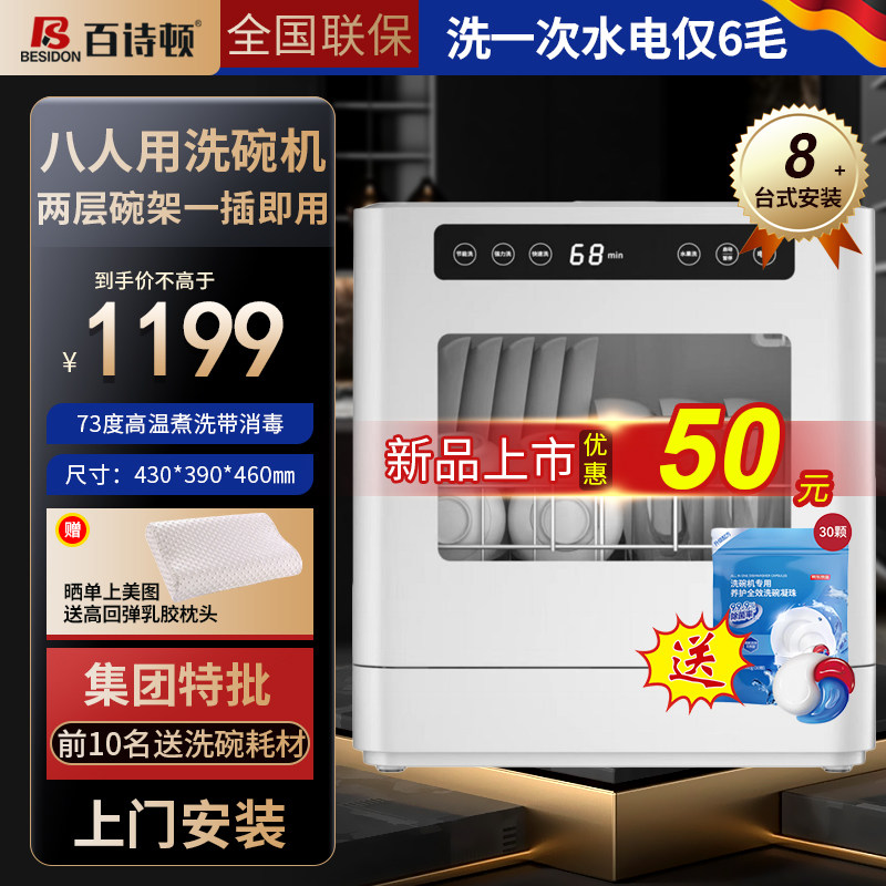 德国品牌百诗顿台式洗碗机小型台嵌两用小套数家用75度煮洗8人用