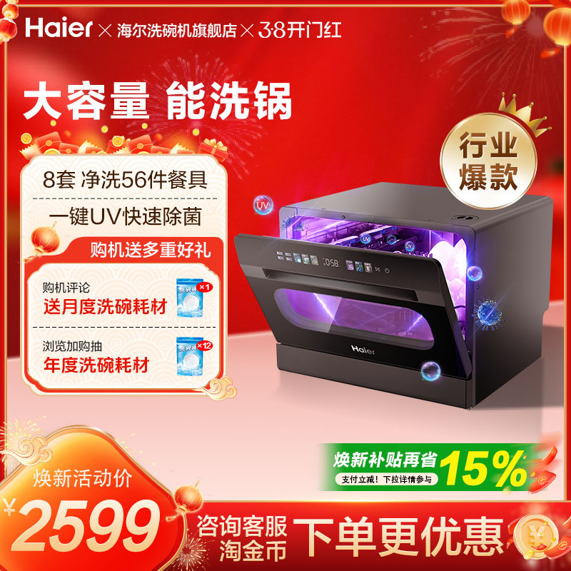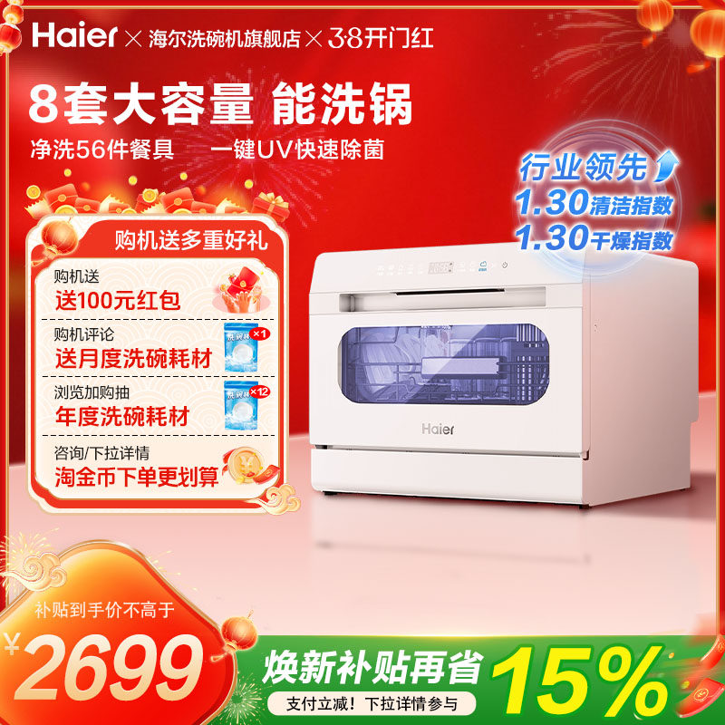 【能洗锅】海尔小海贝台式洗碗机8套全自动家用小型一键UV消毒