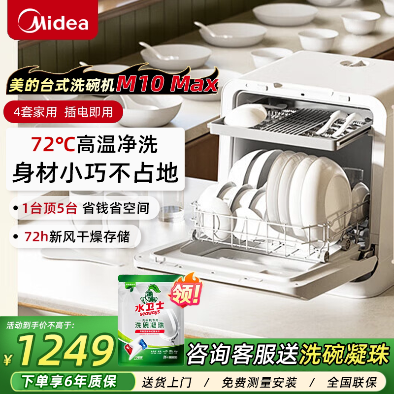 美的可爱多洗碗机M10Max家用全自动小型台式免安装消毒杀菌免安装