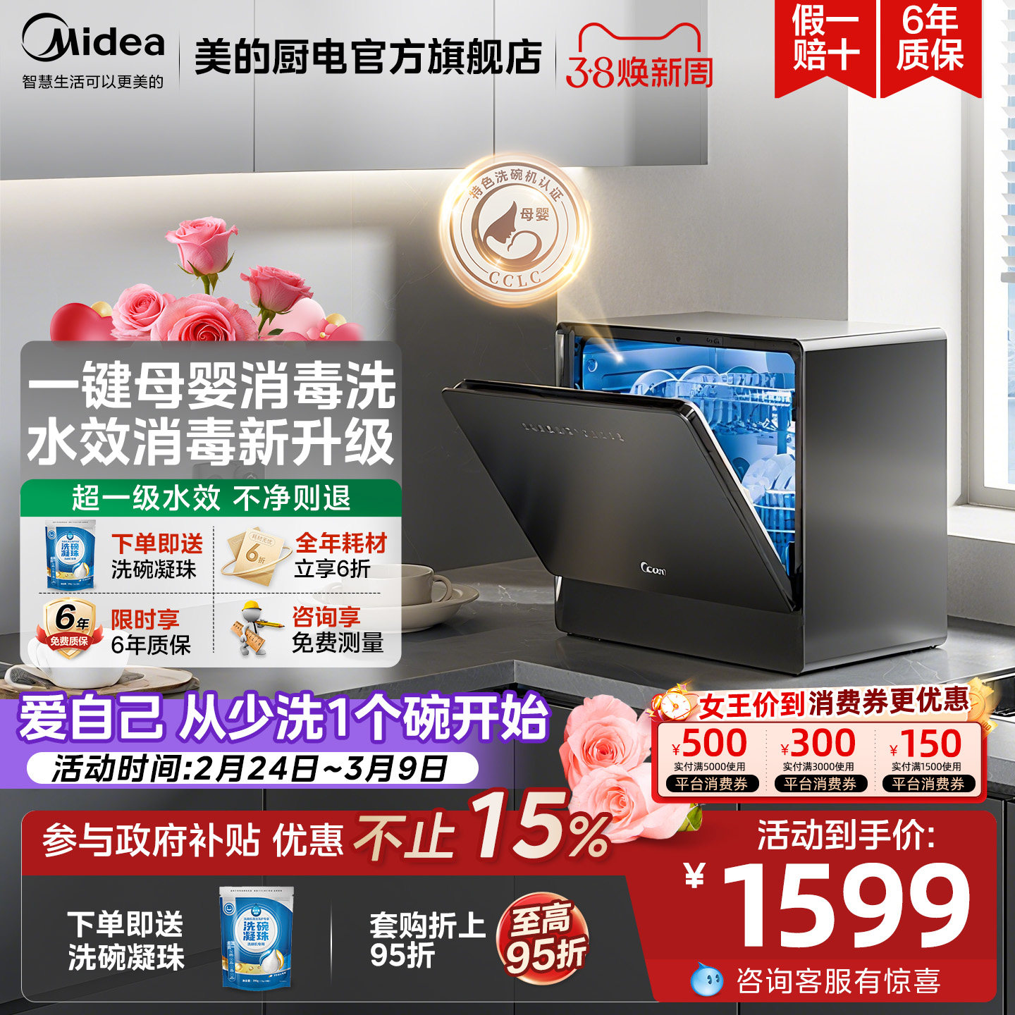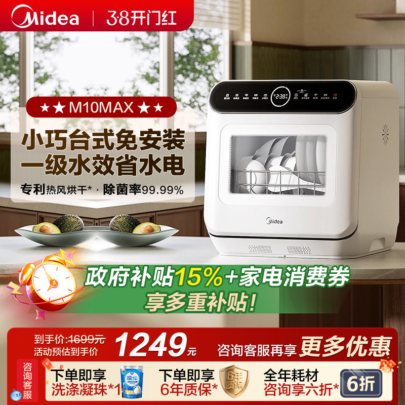 美的台式洗碗机全自动家用免安装4套小型洗消烘存一级水效M10Max