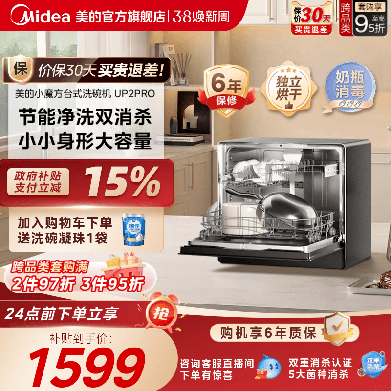 美的小魔方台式洗碗机UP2Pro家用全自动母婴消杀烘干一体超薄机身