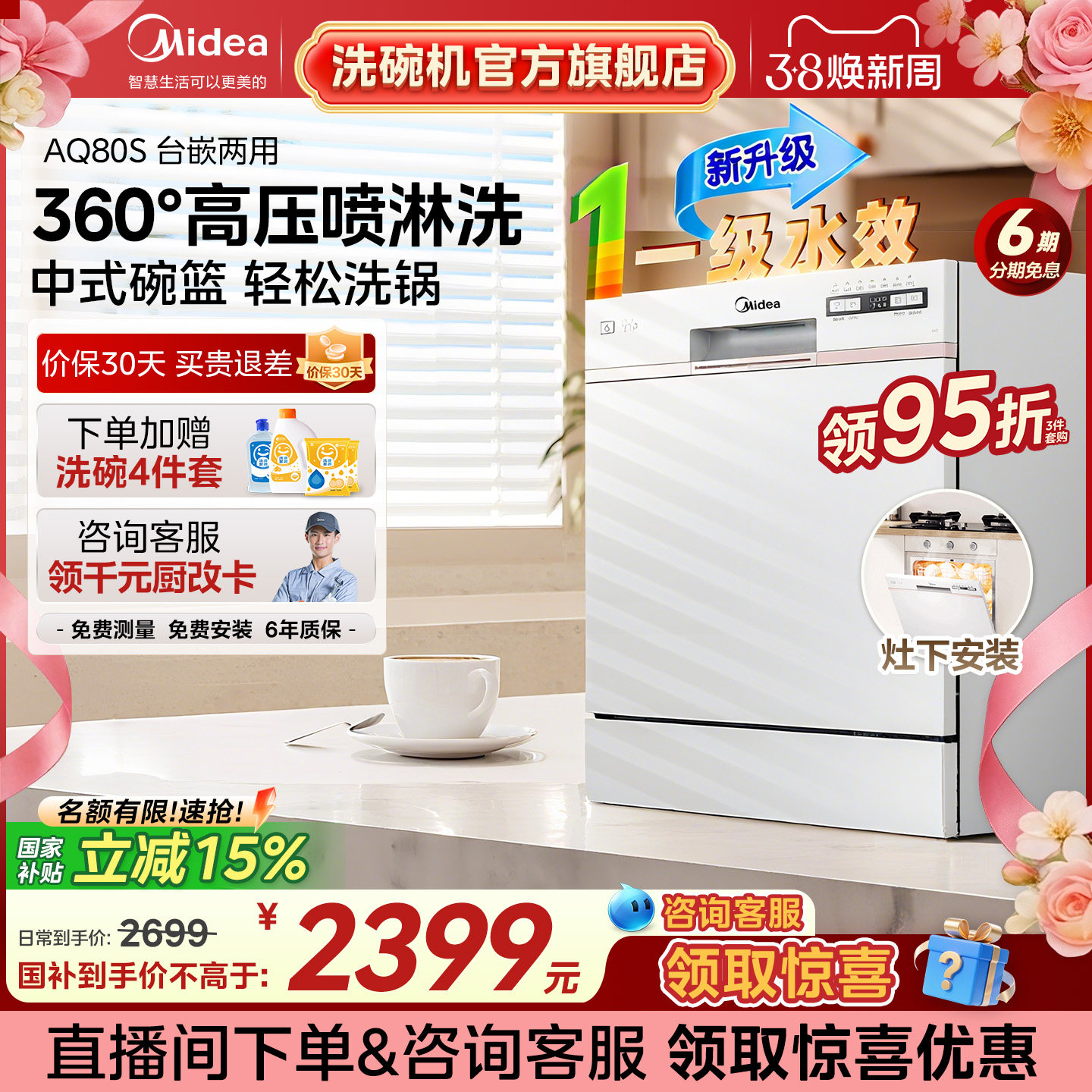 美的台式洗碗机AQ80S家用全自动小型灶下自动开门10套官方