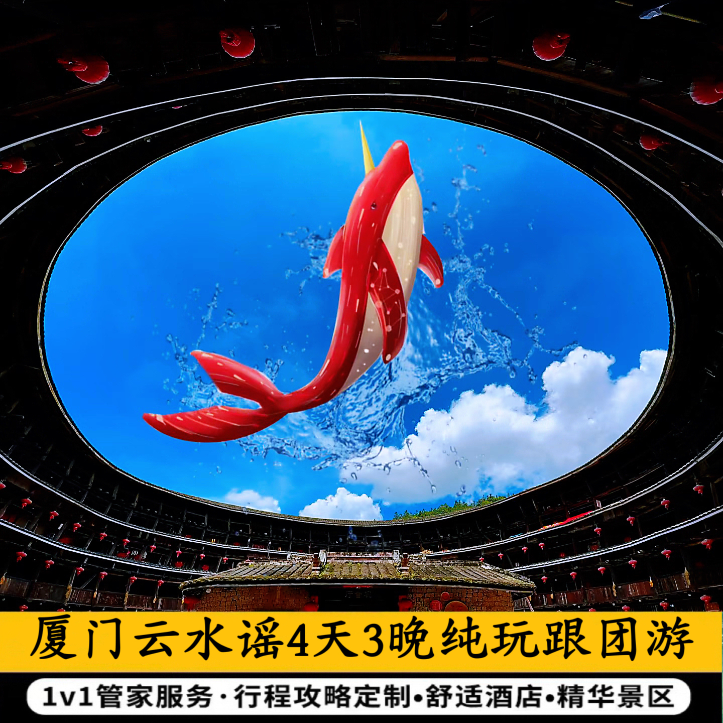厦门旅游4天3晚 鼓浪屿/云水谣/南靖土楼亲子纯玩跟团游/酒店连住