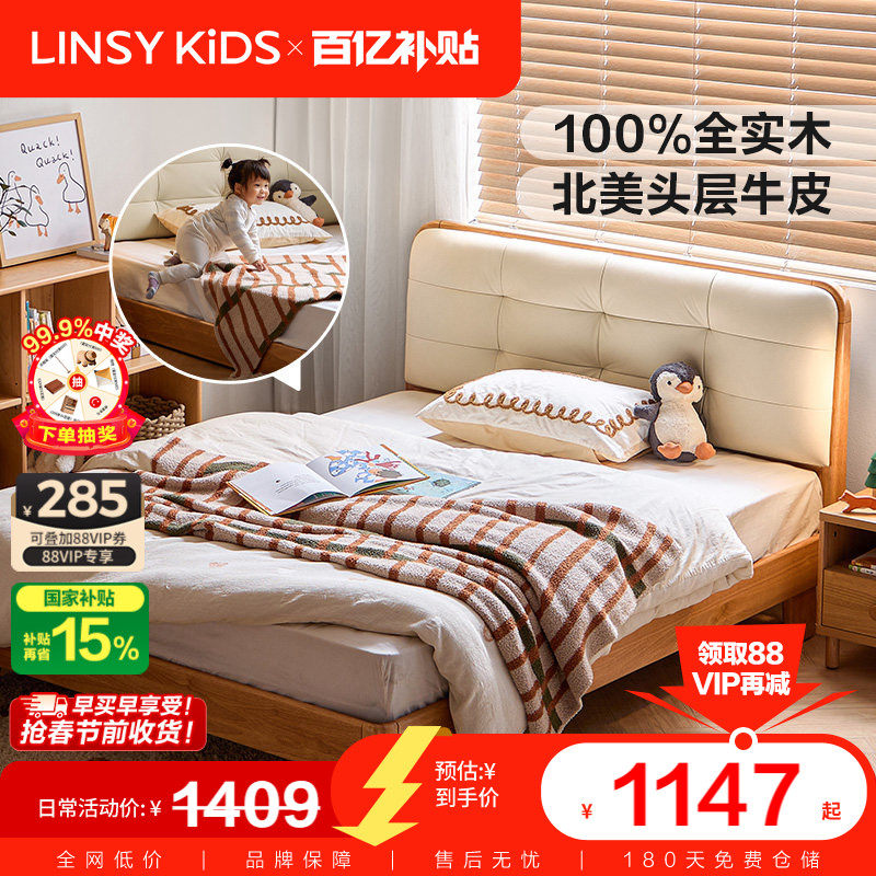 林氏儿童实木床1米5真皮男孩女孩儿卧室榻榻米蒙氏地台床2025新款