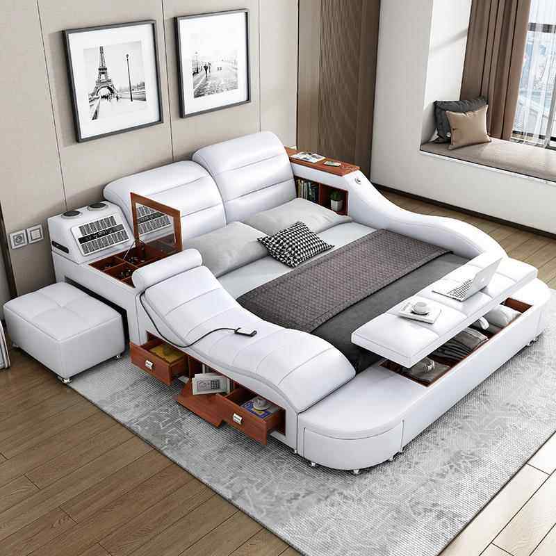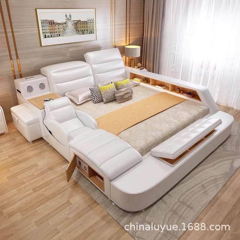 榻榻米真皮床主卧欧式双人床1.8m现代简约多功能按摩储物智能家居
